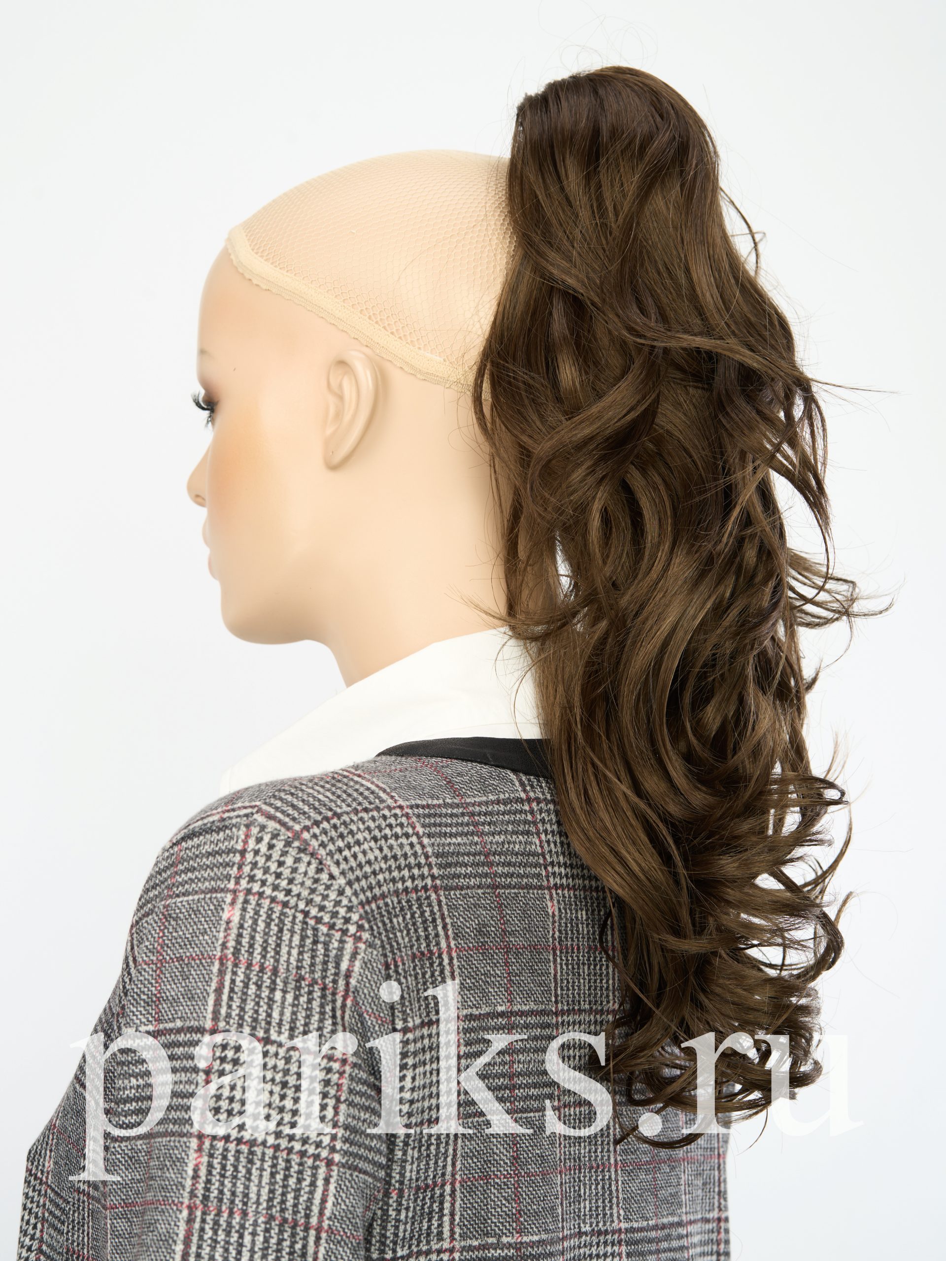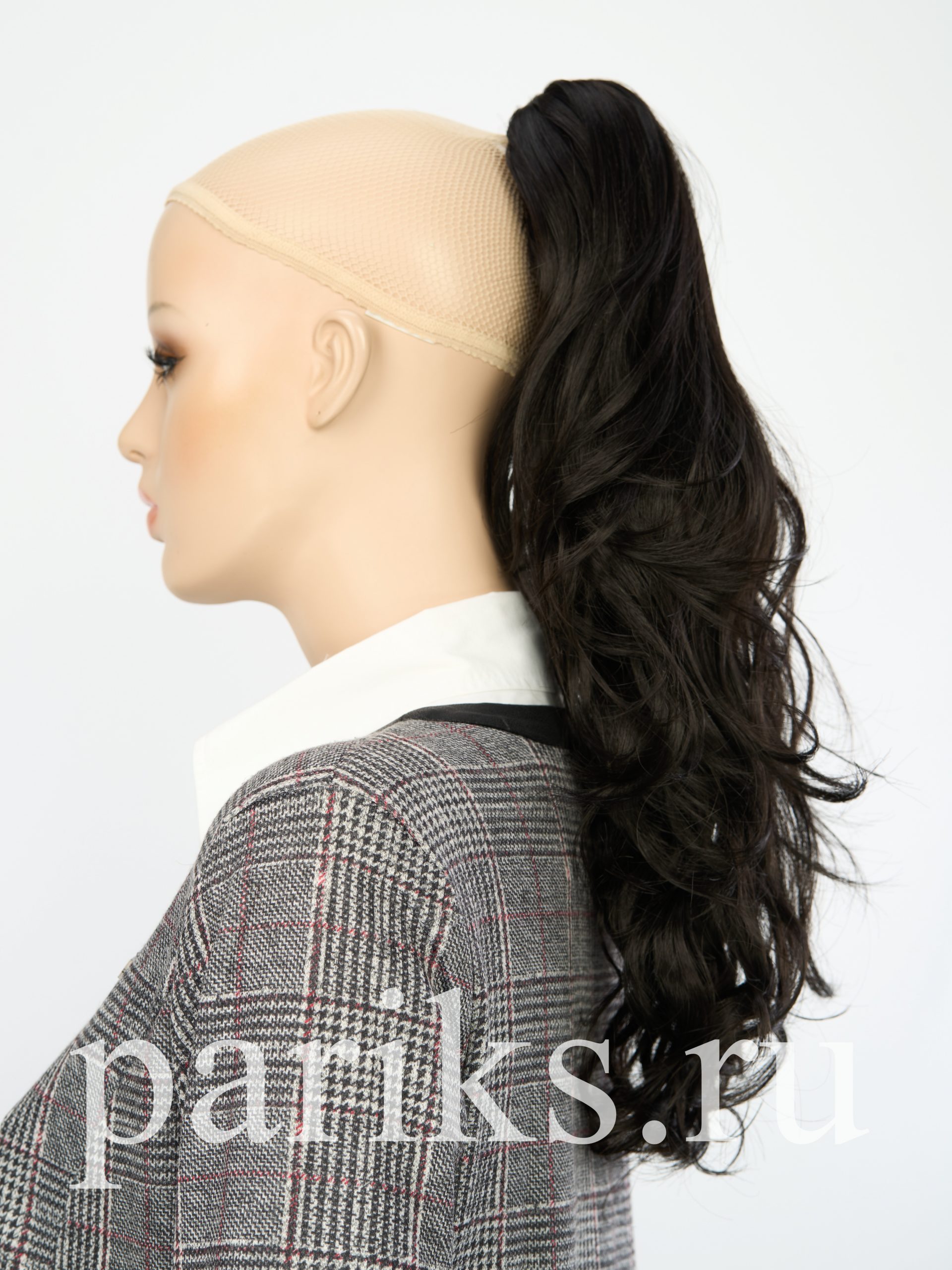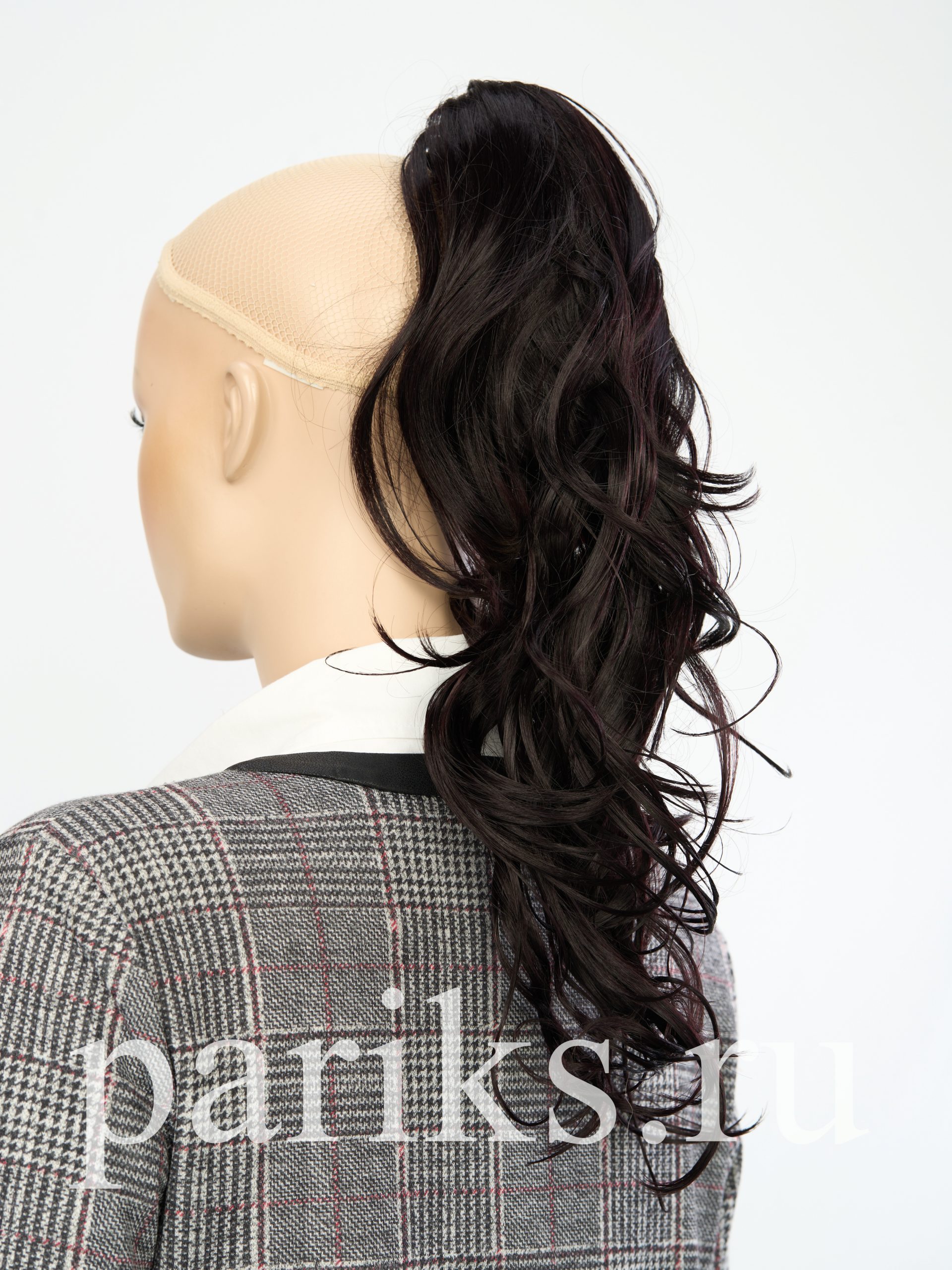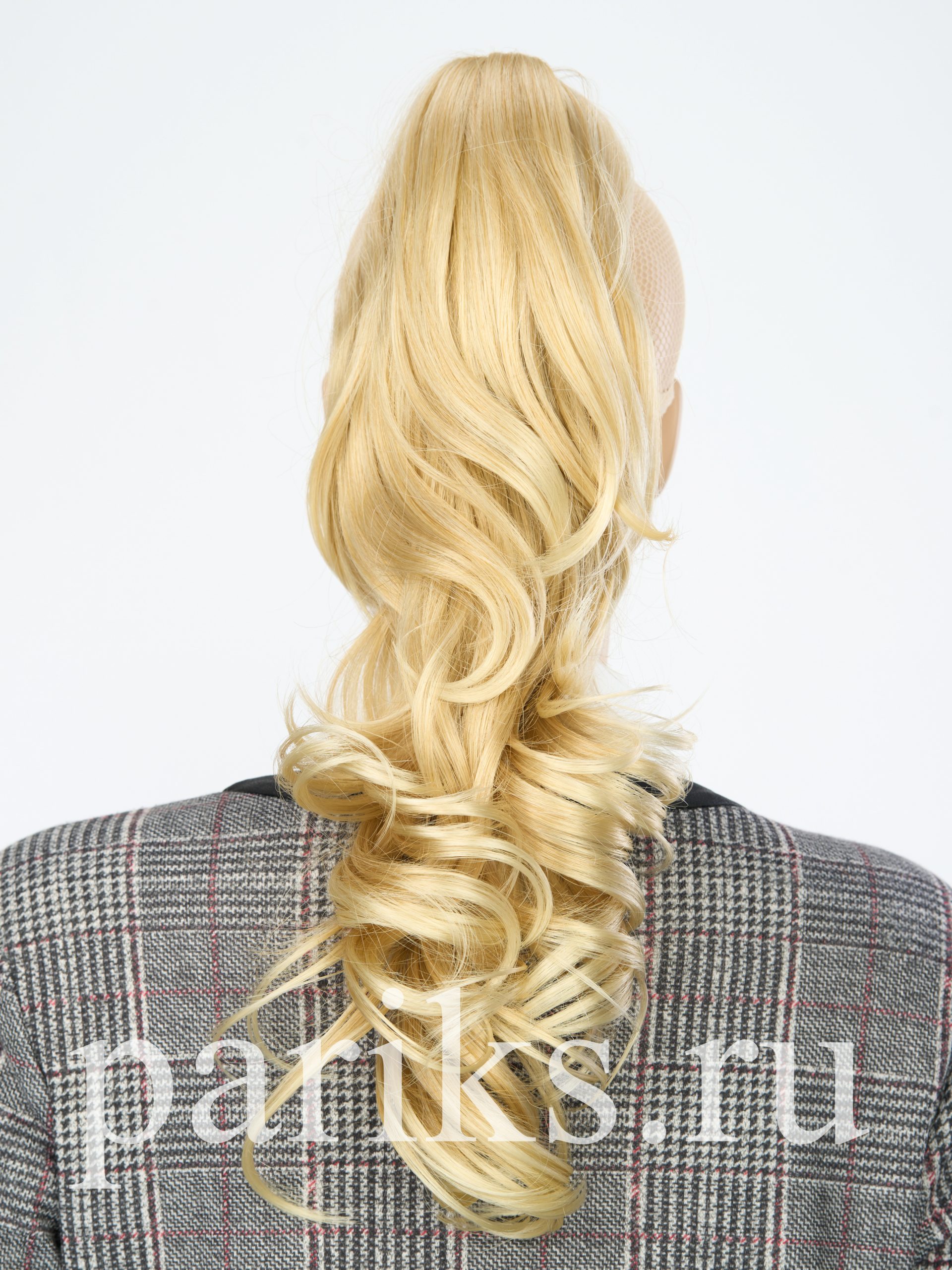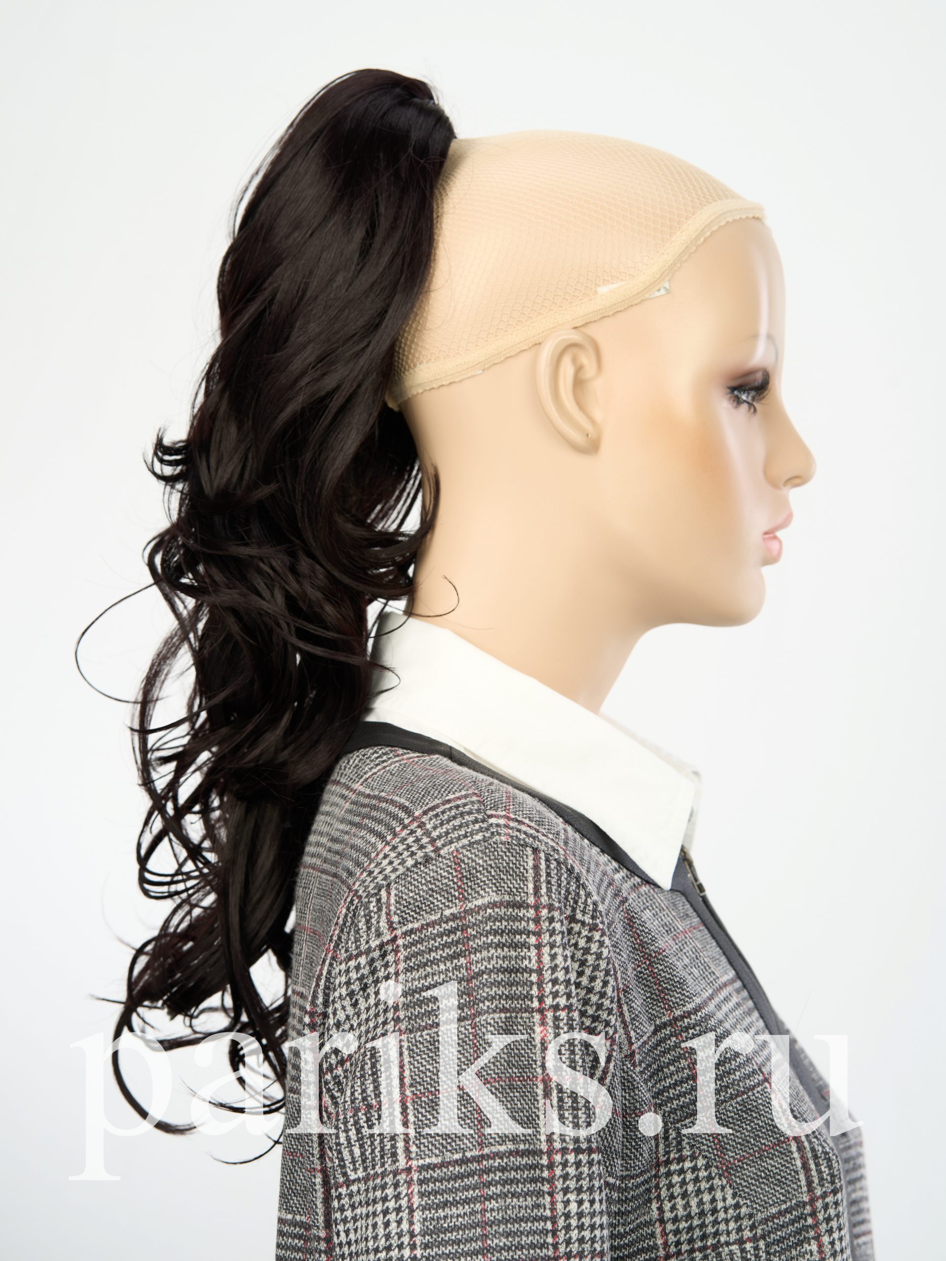 Свой волос стягивается в хвост, фиксируется резинкой.