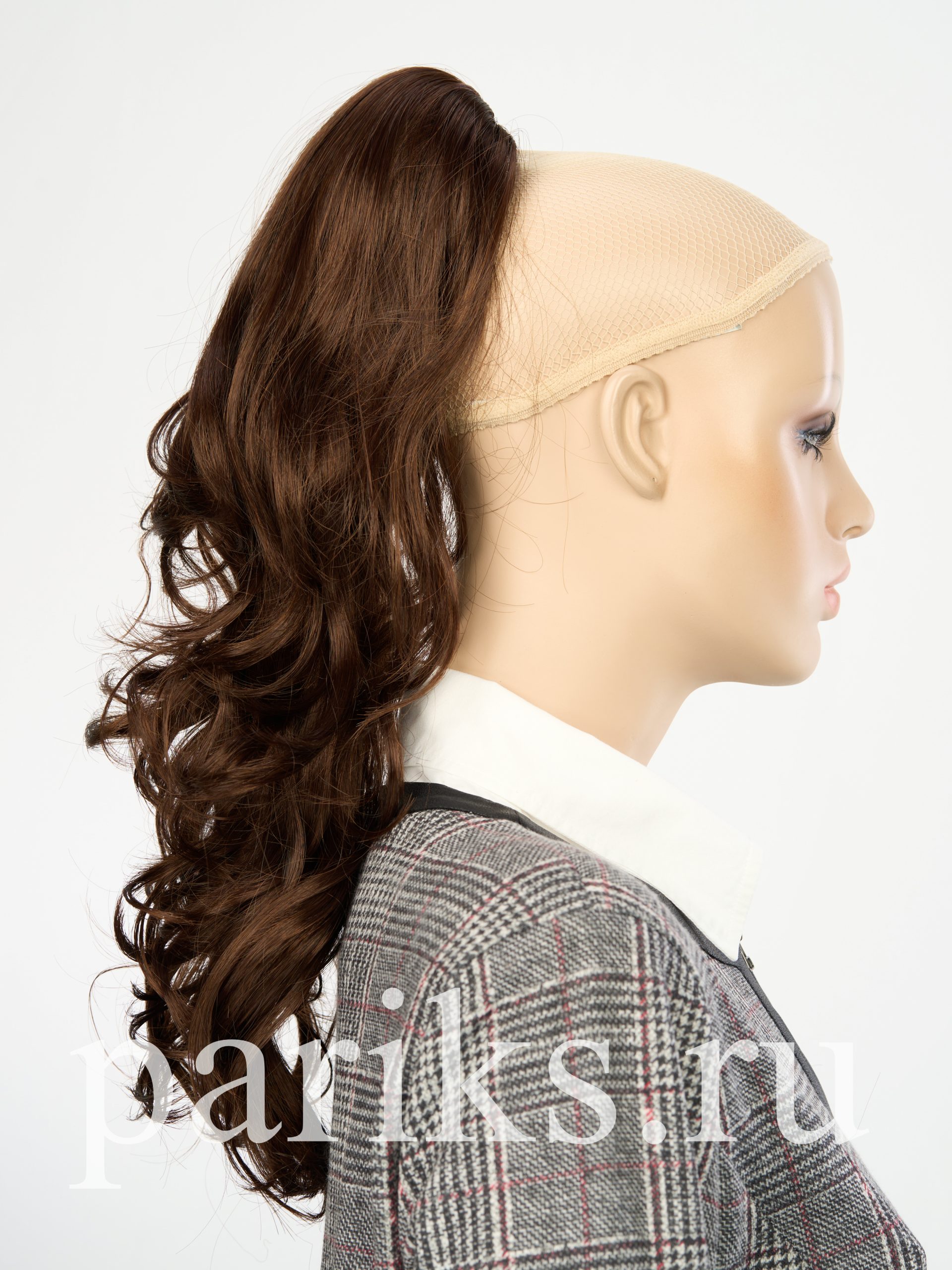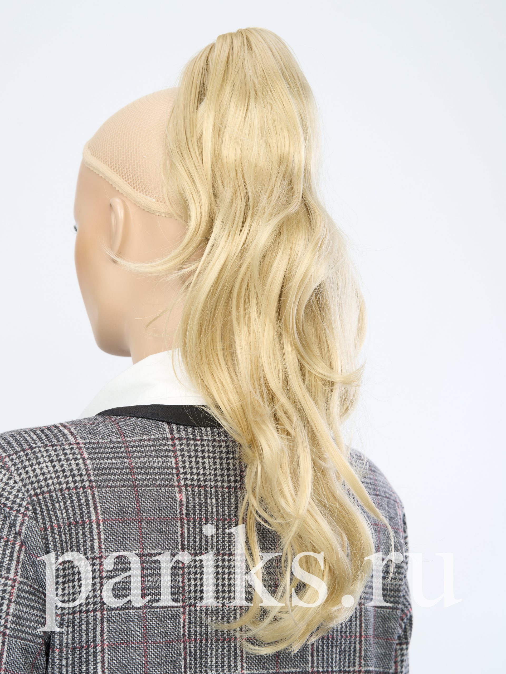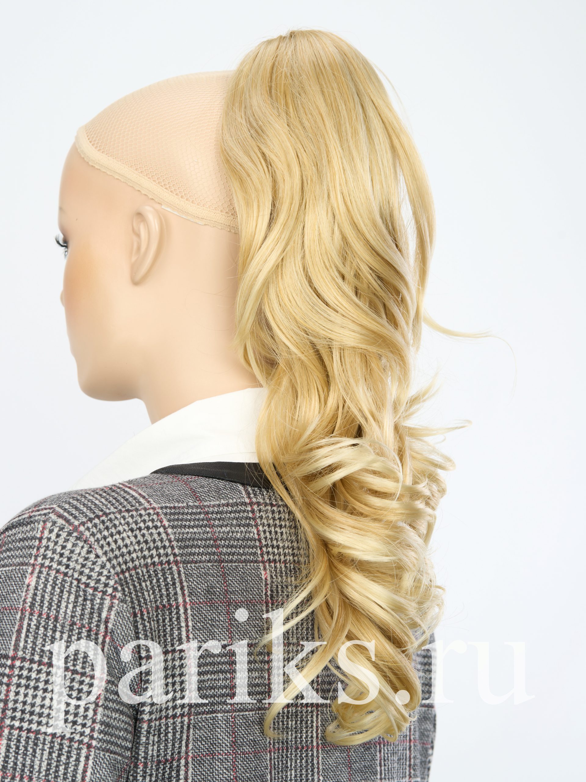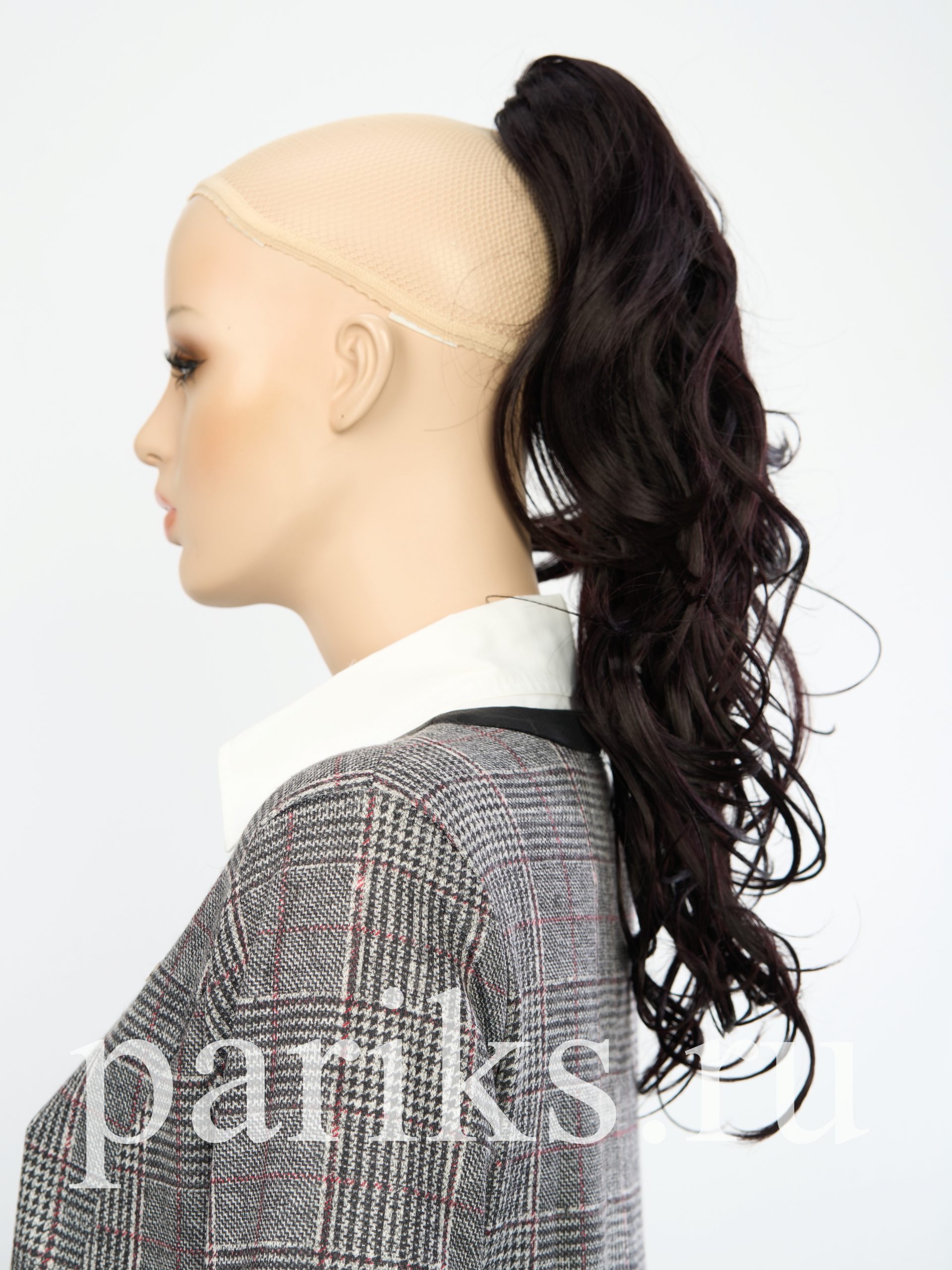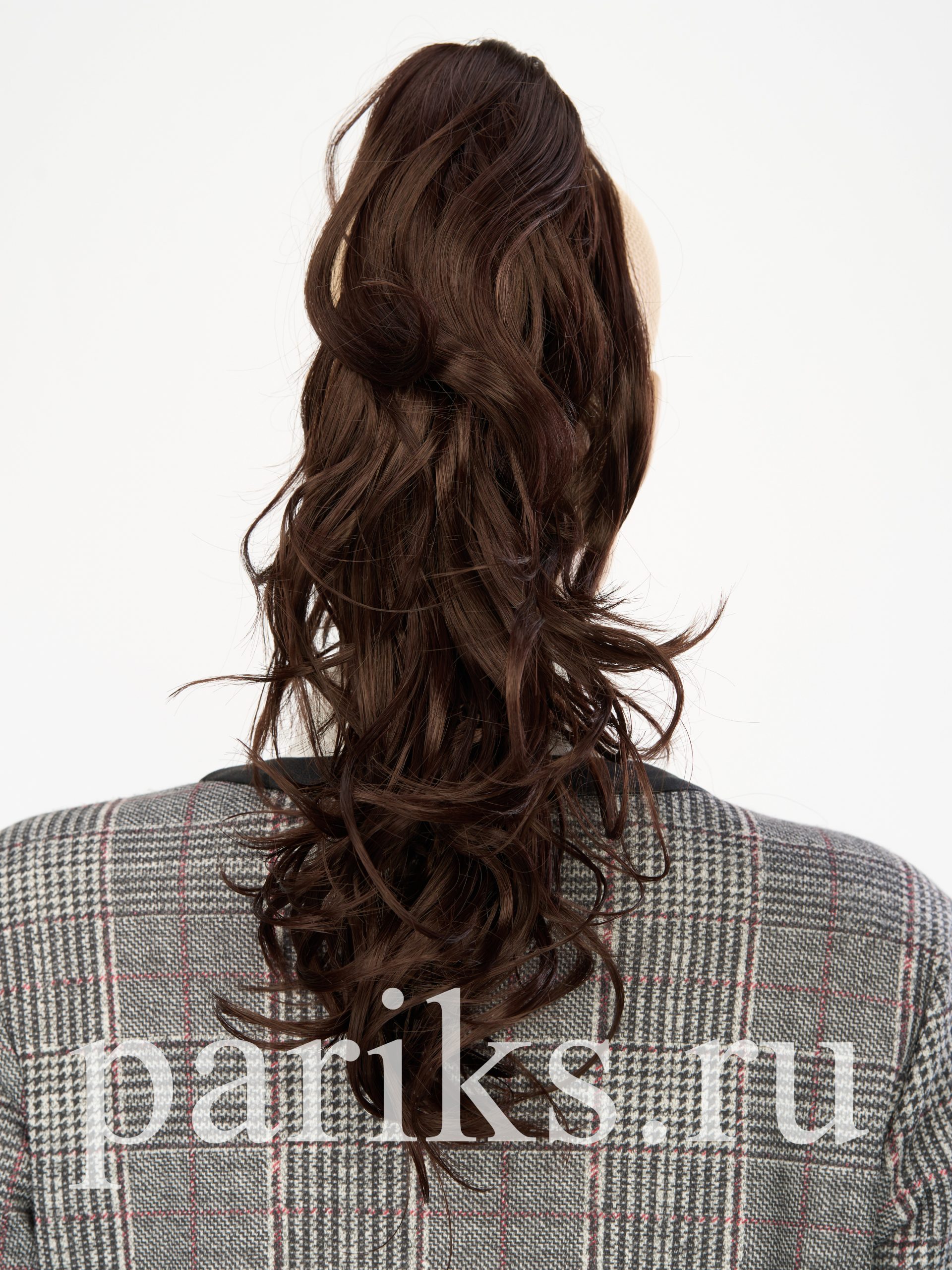 Свой волос стягивается в хвост, фиксируется резинкой.