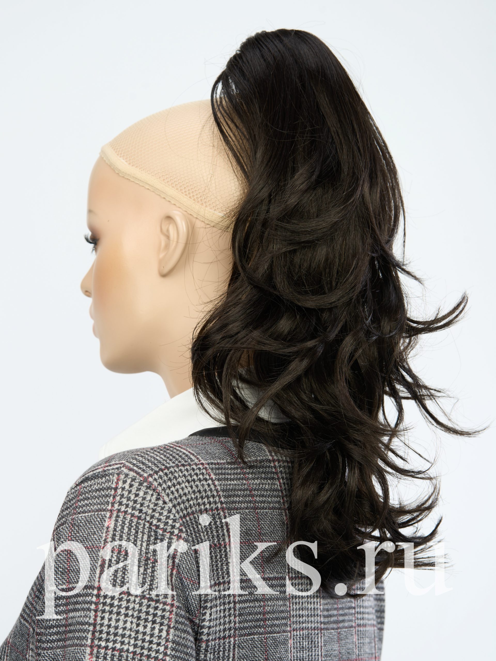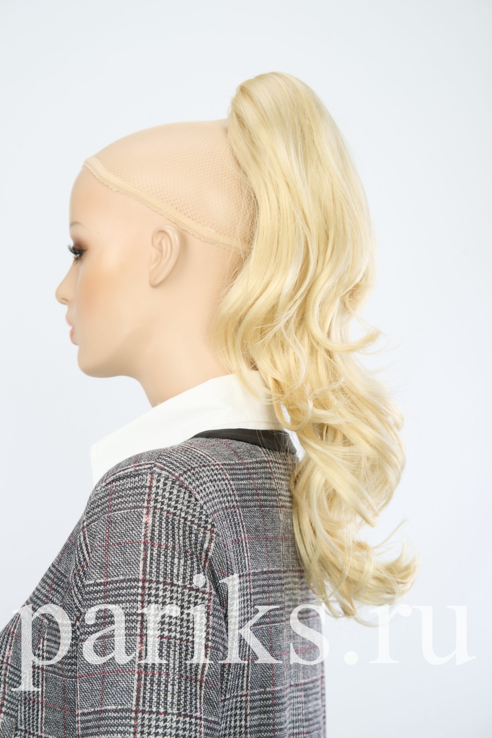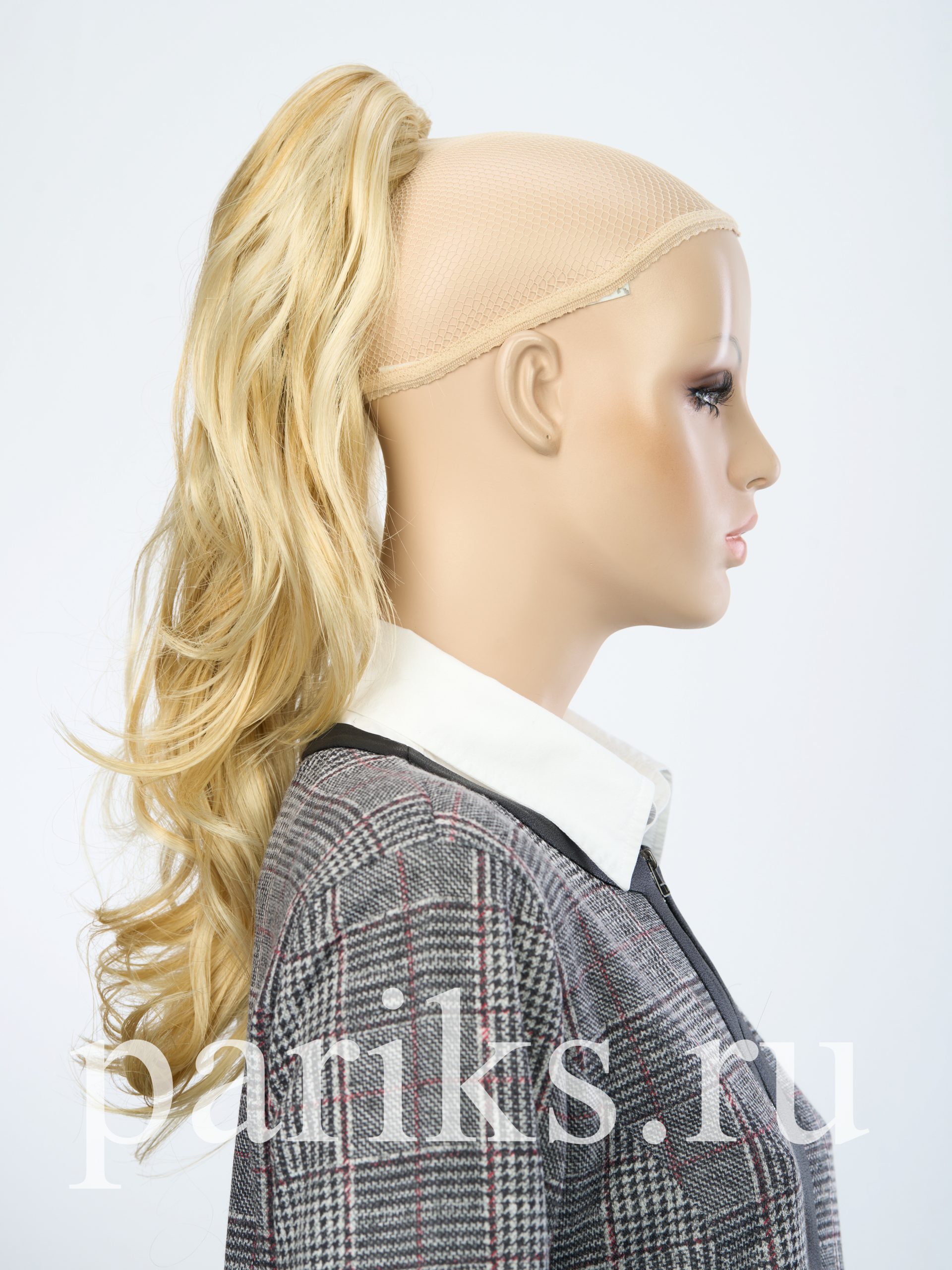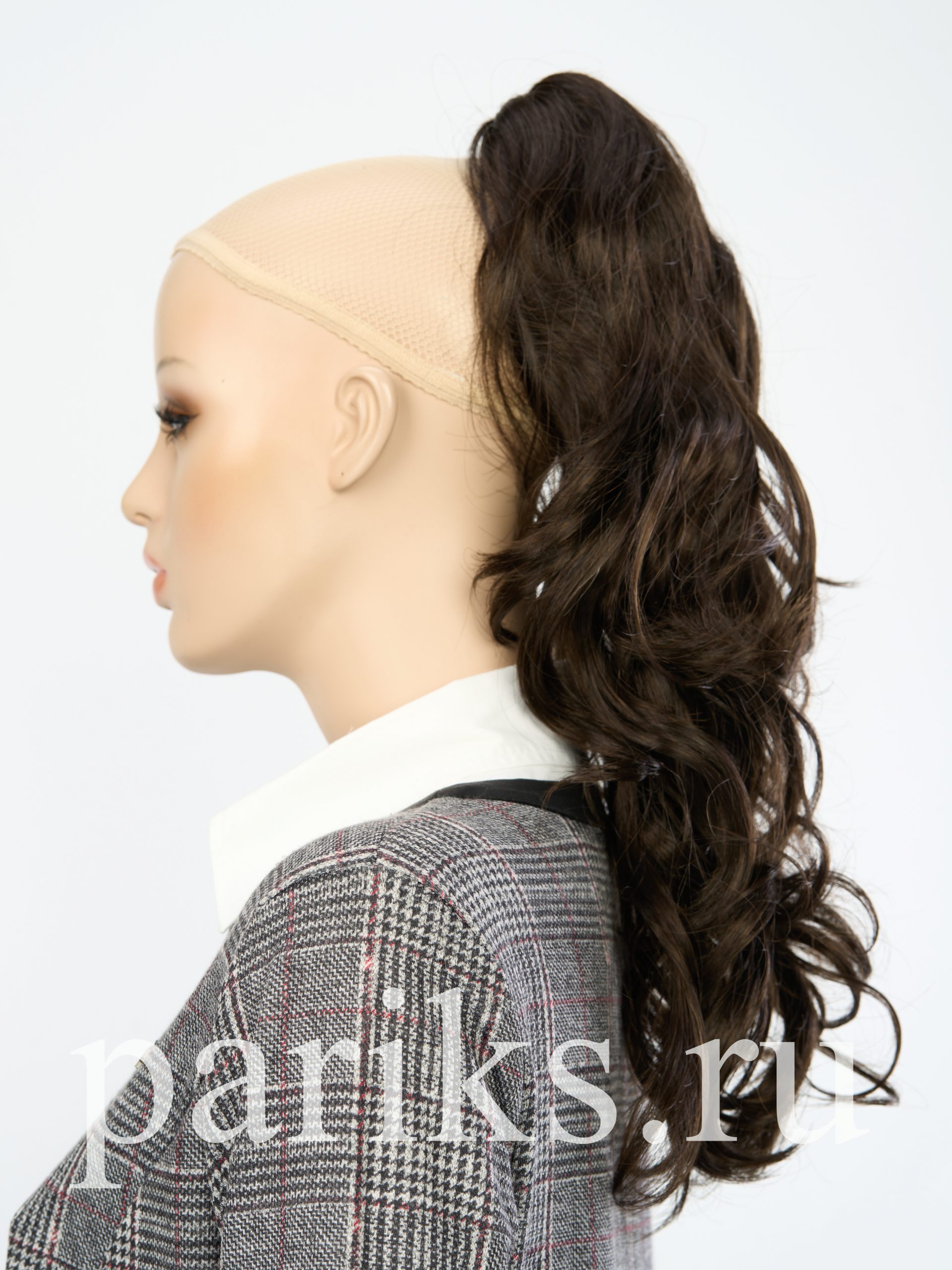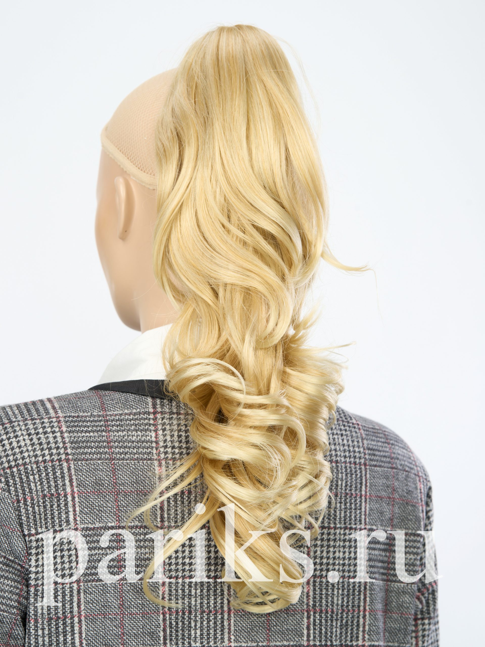 Свой волос стягивается в хвост, фиксируется резинкой.