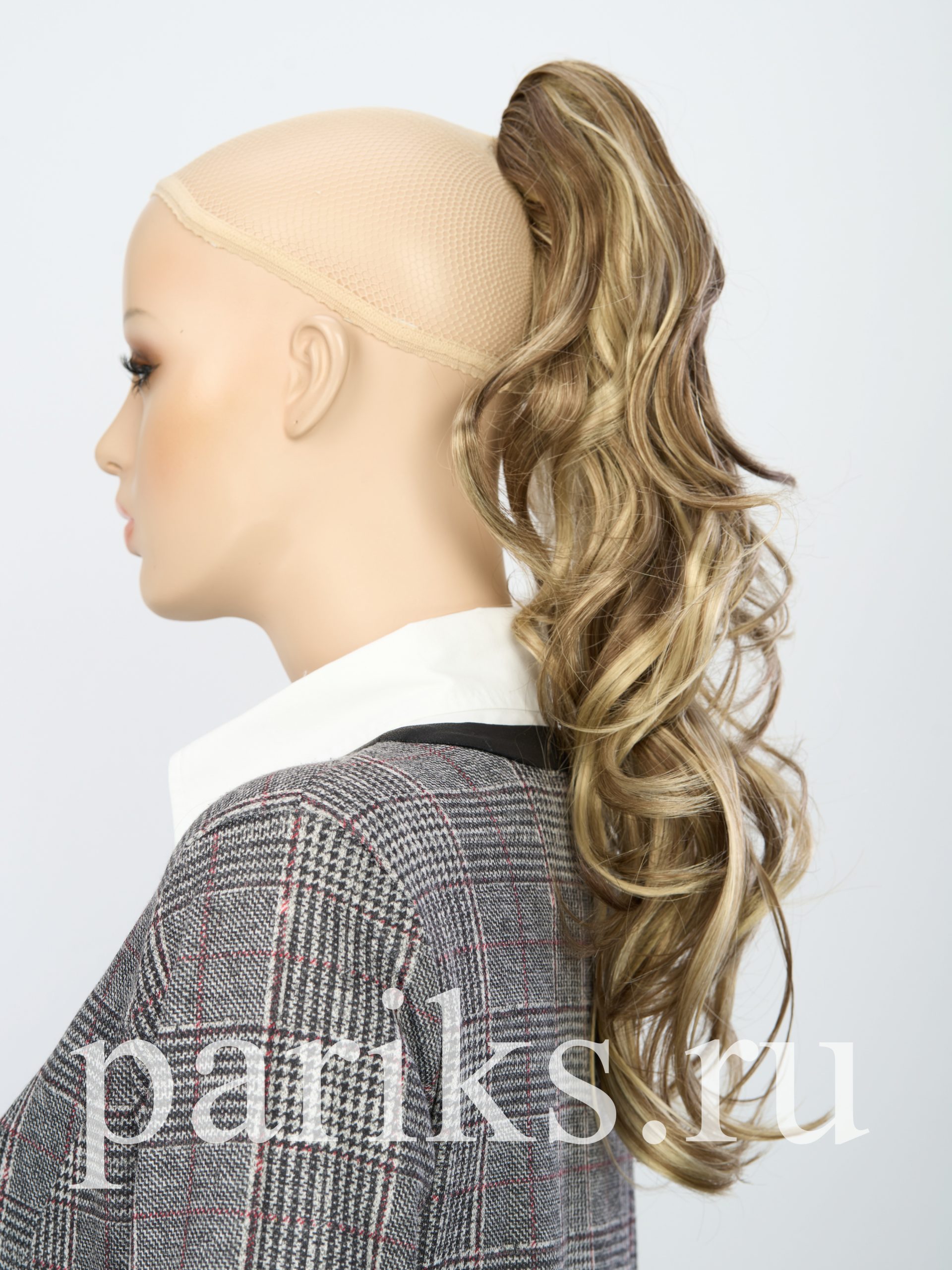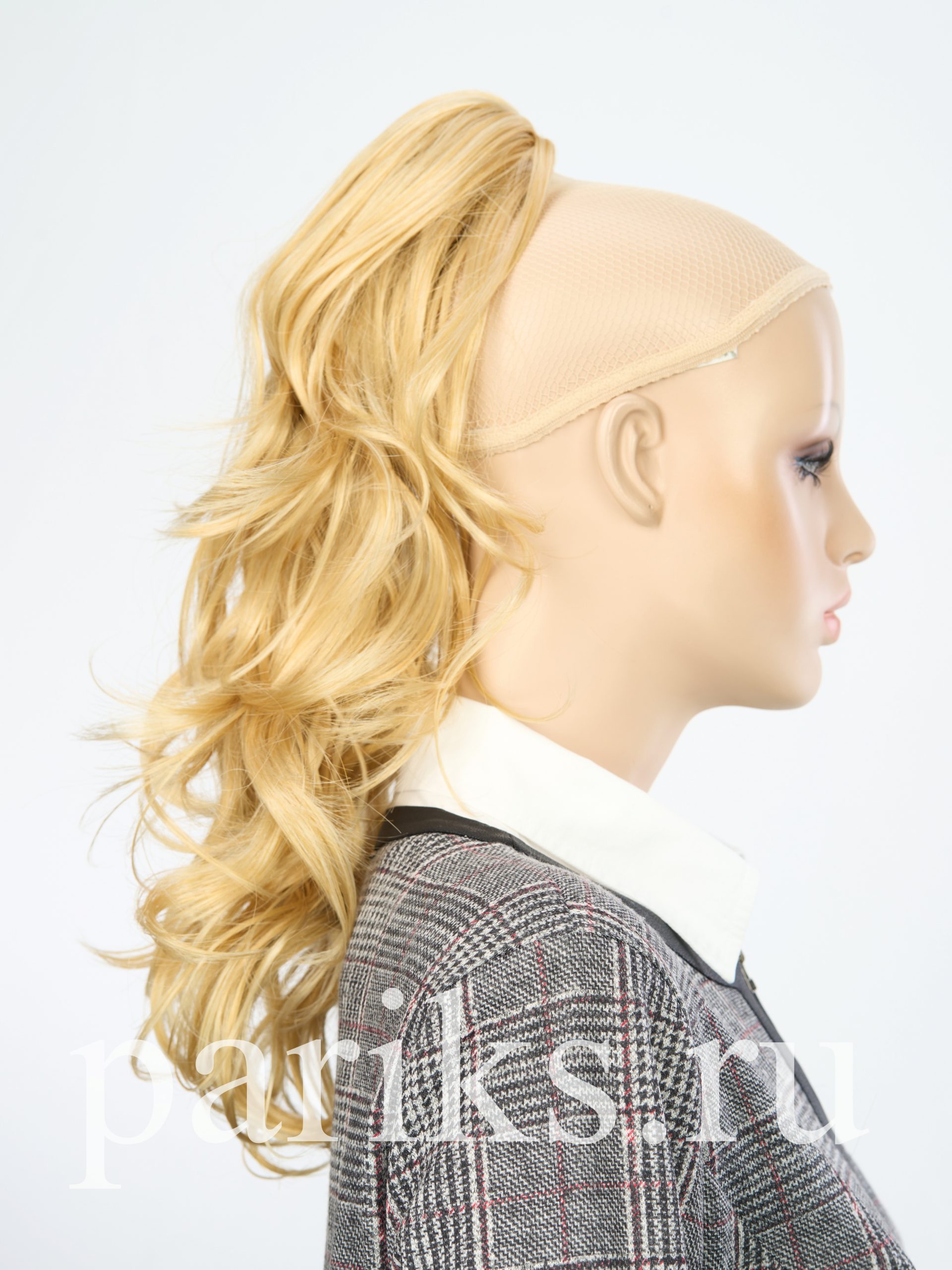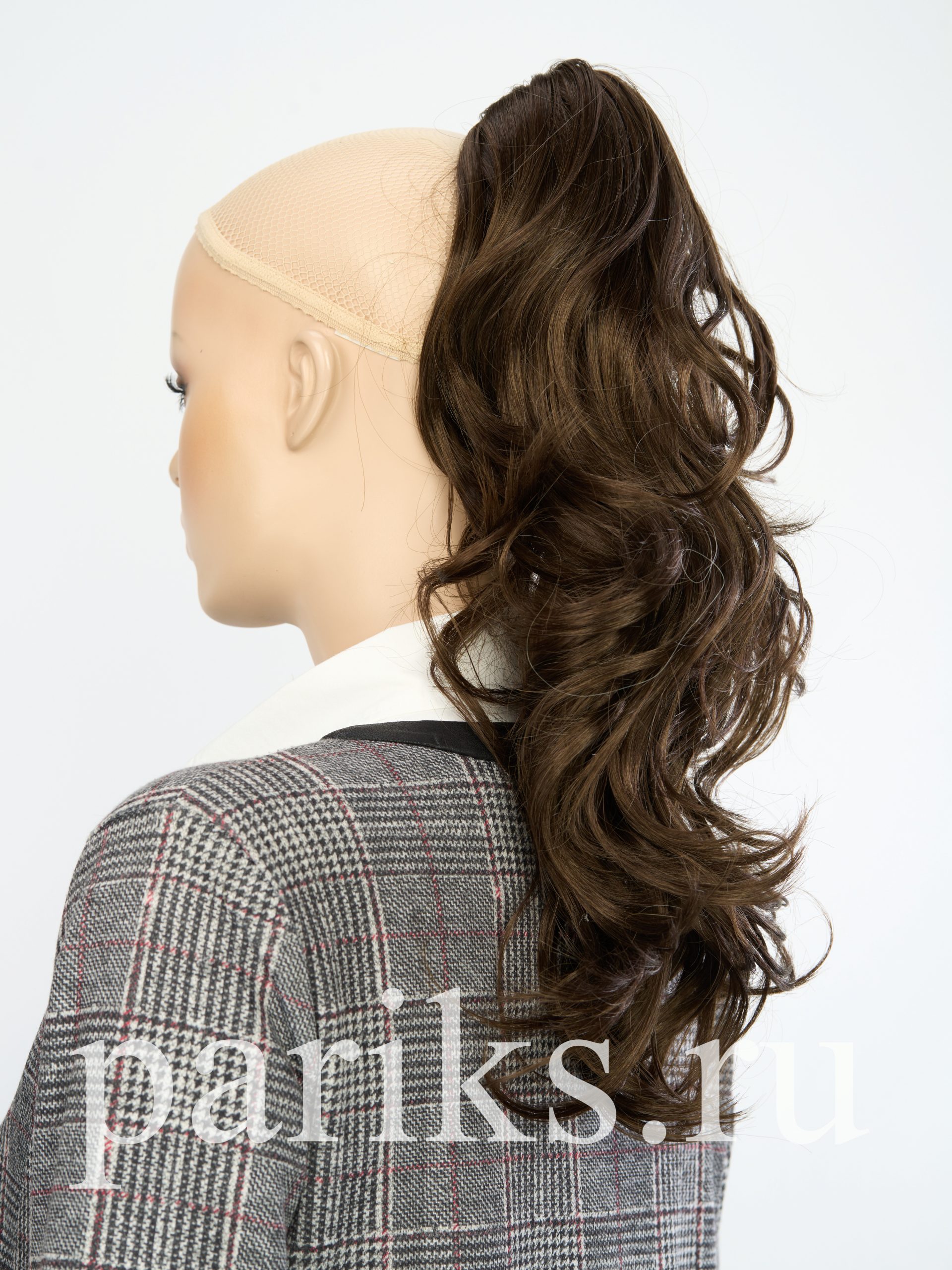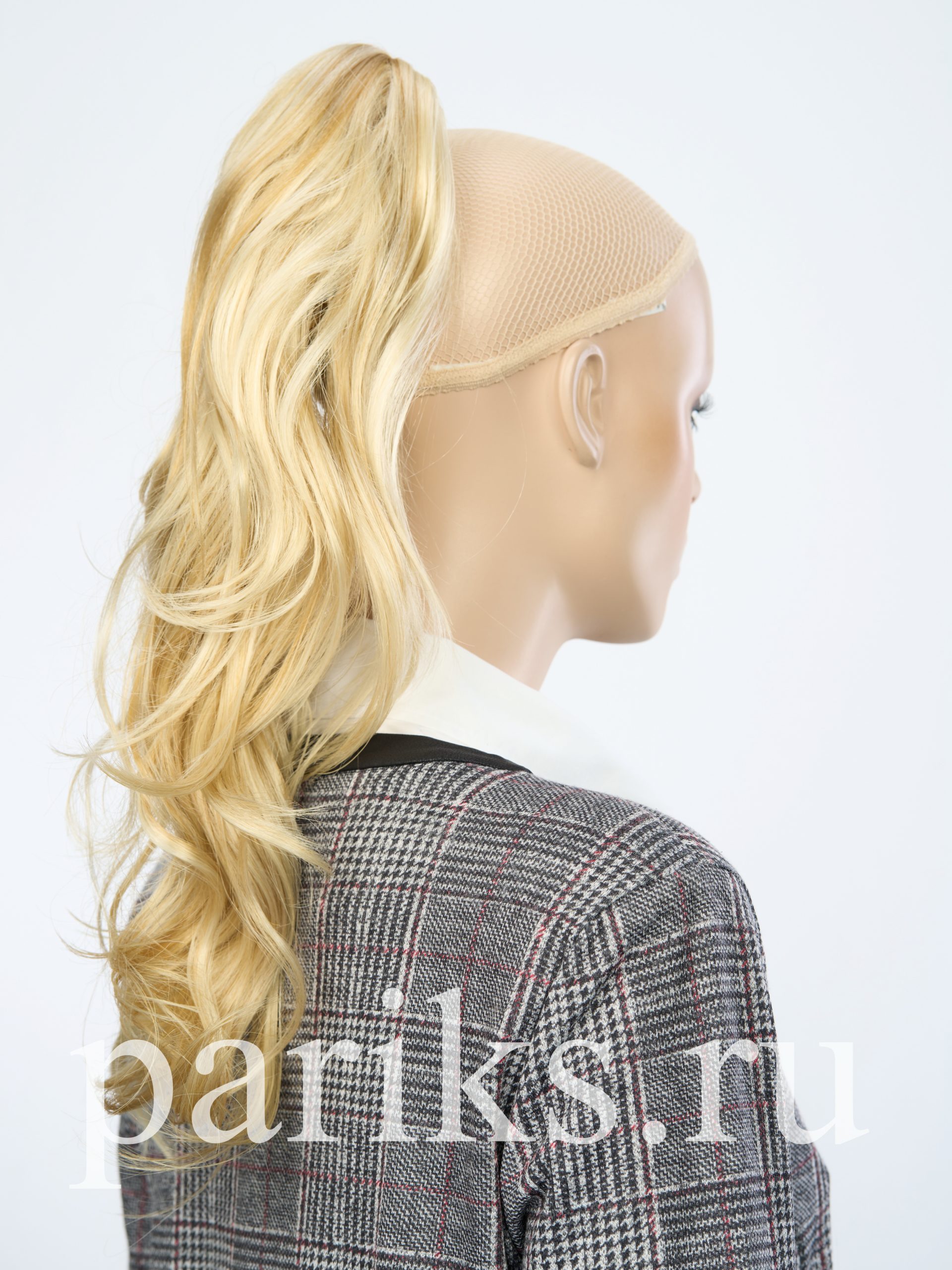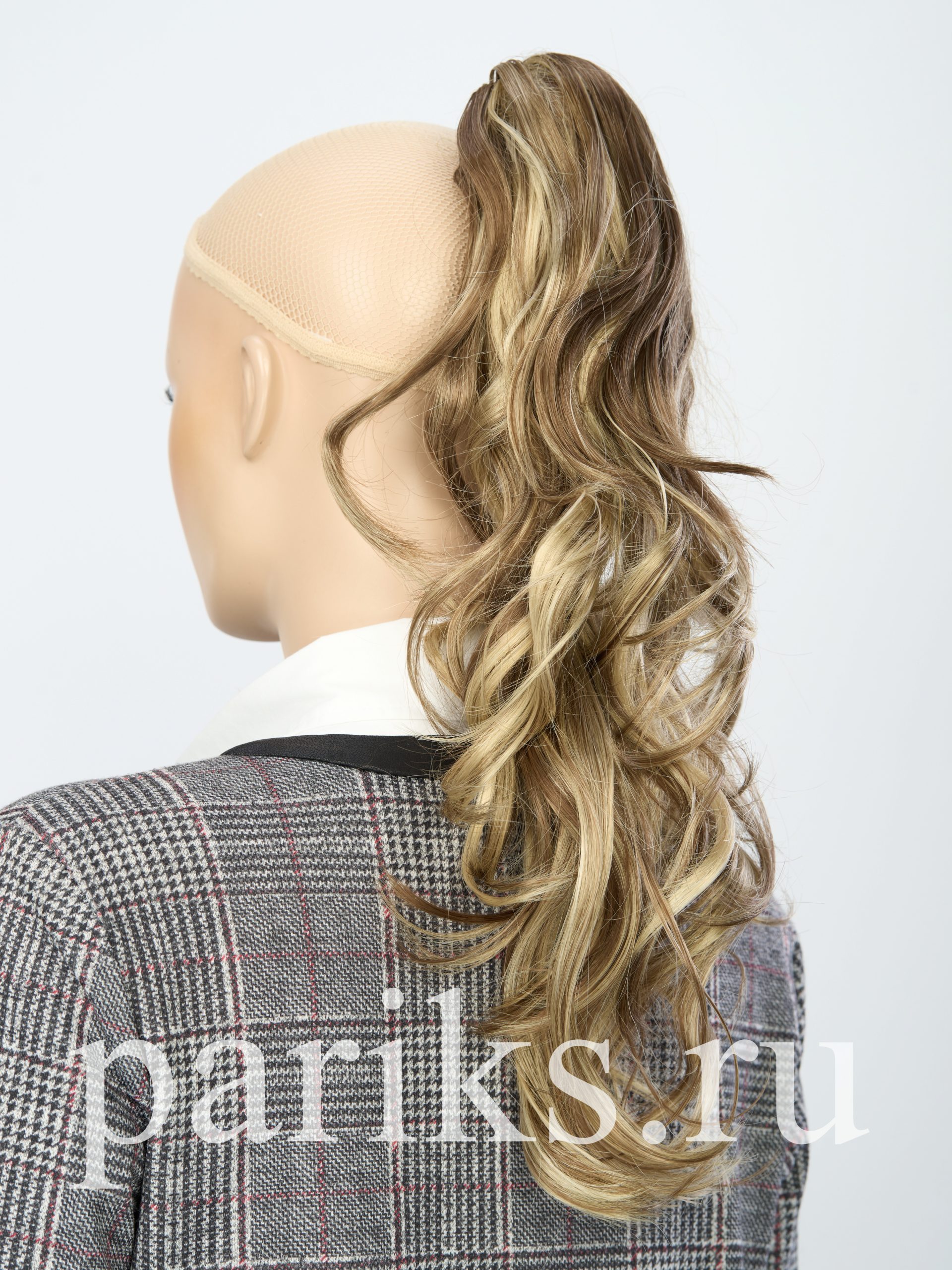 Свой волос стягивается в хвост, фиксируется резинкой.
