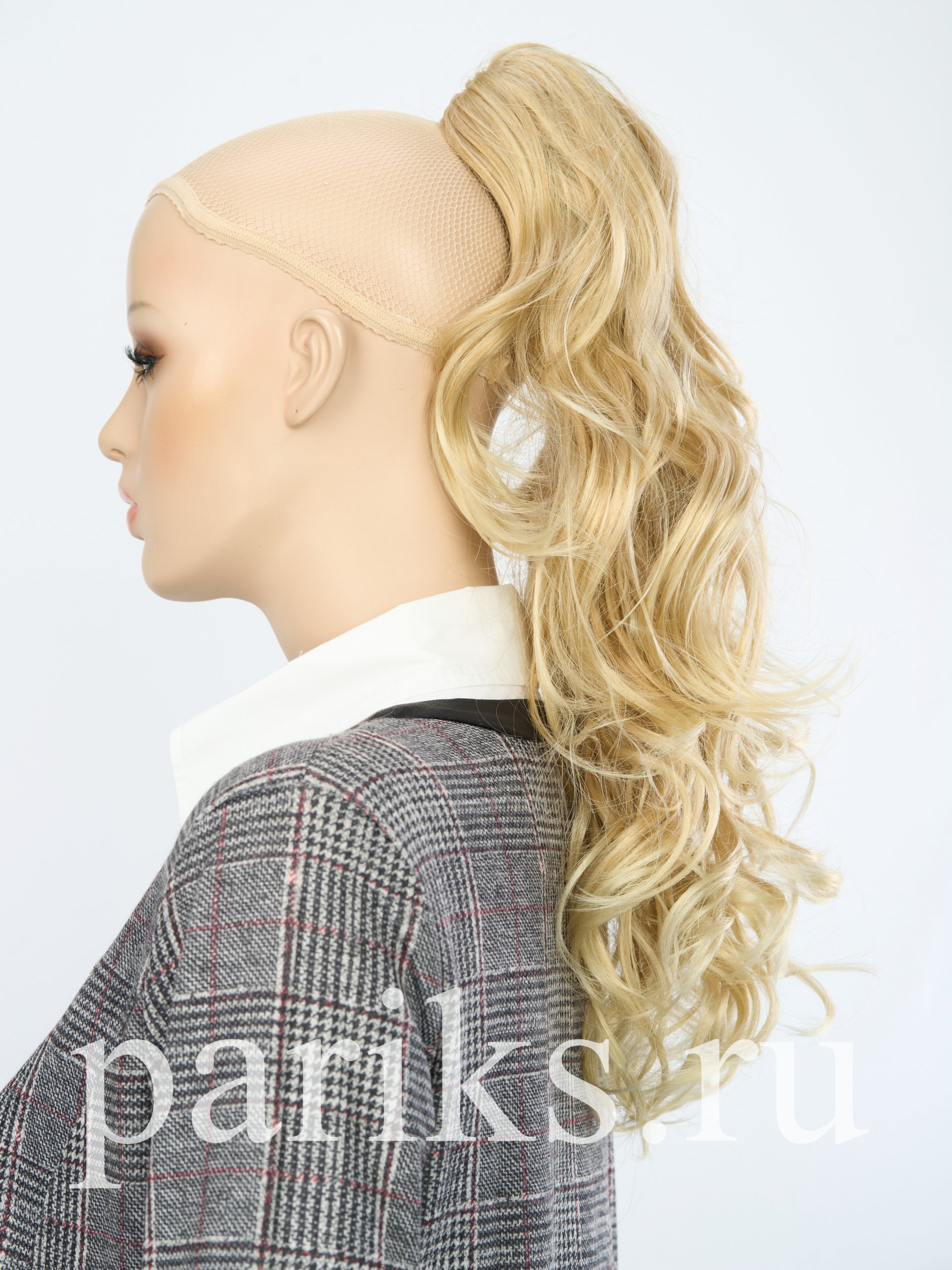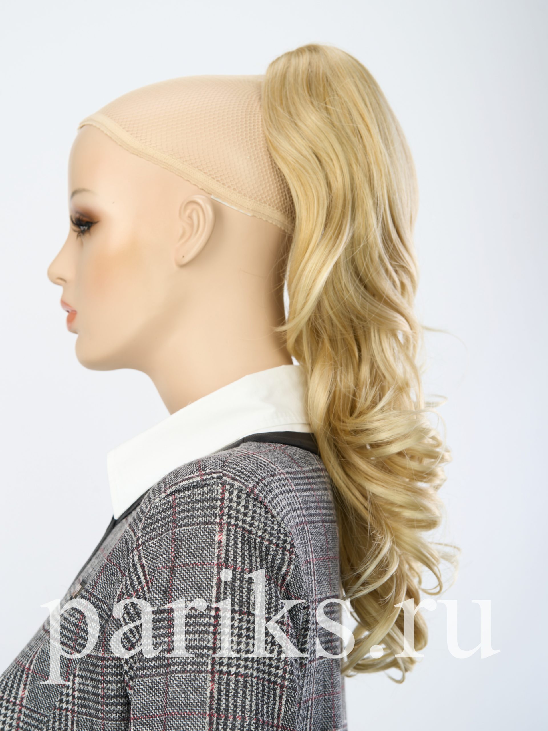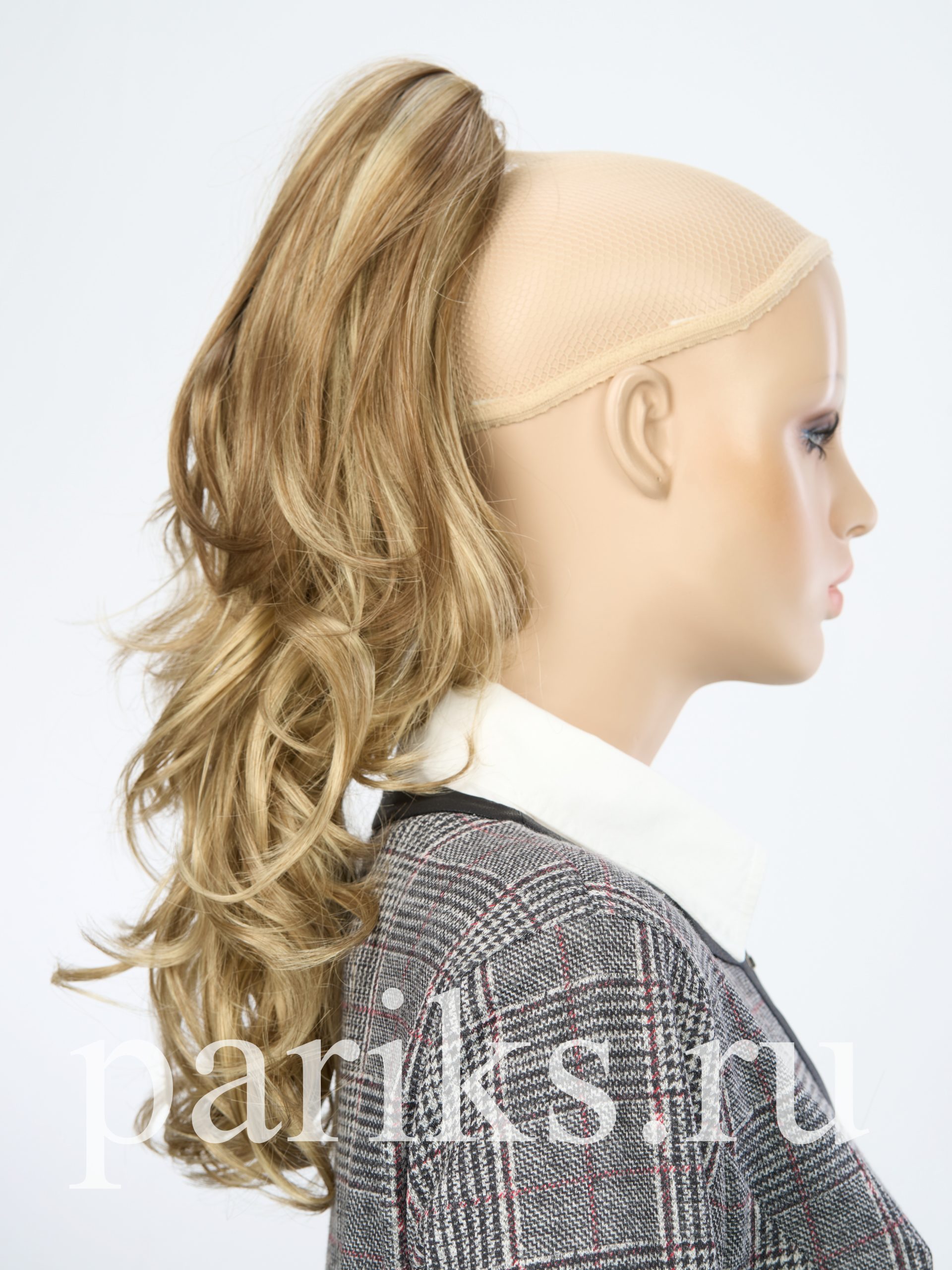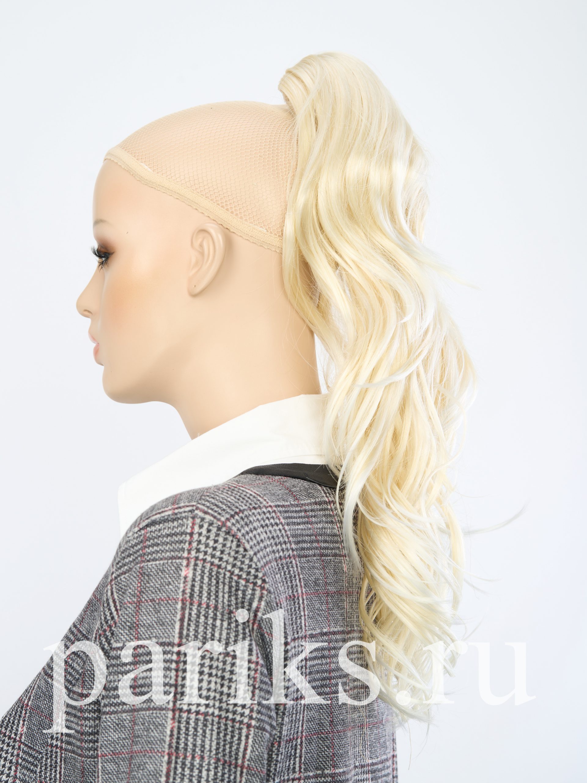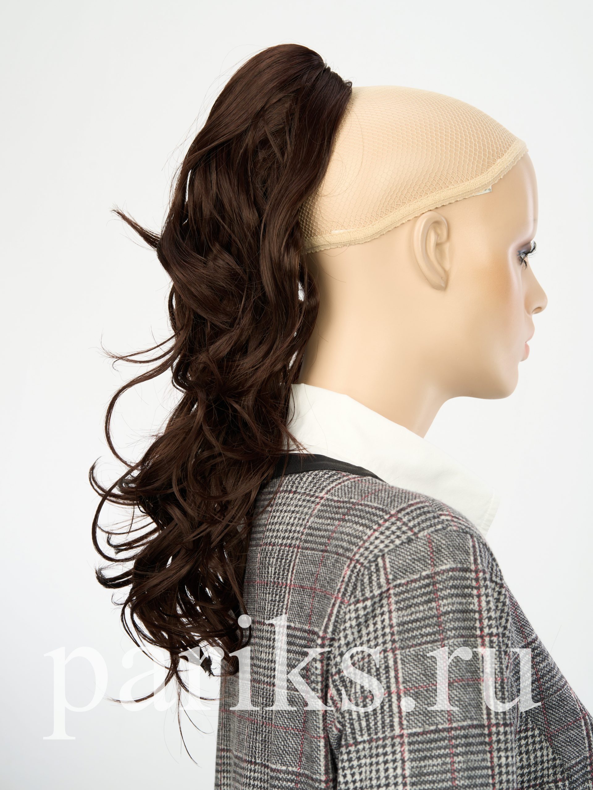 Свой волос стягивается в хвост, фиксируется резинкой.