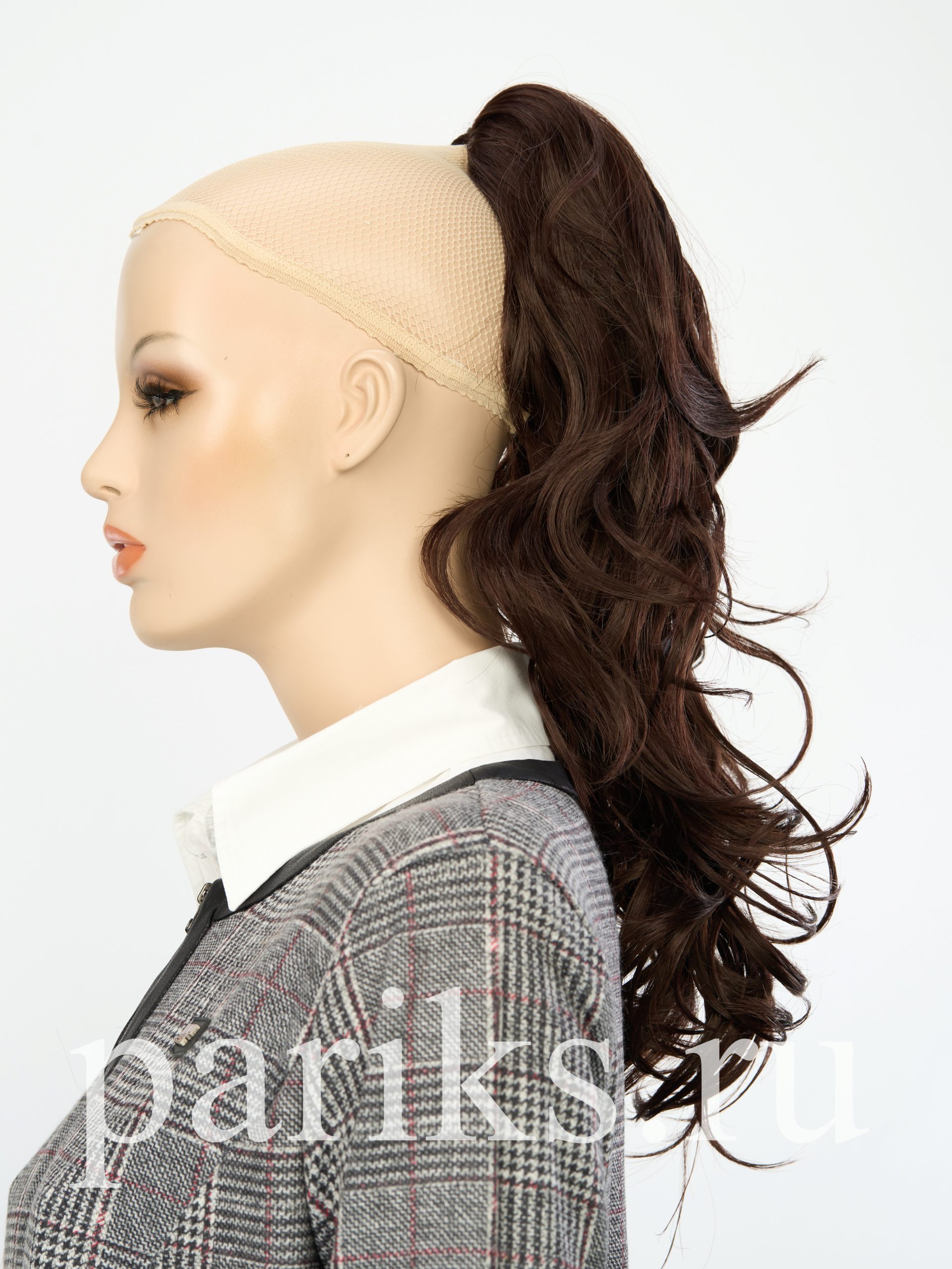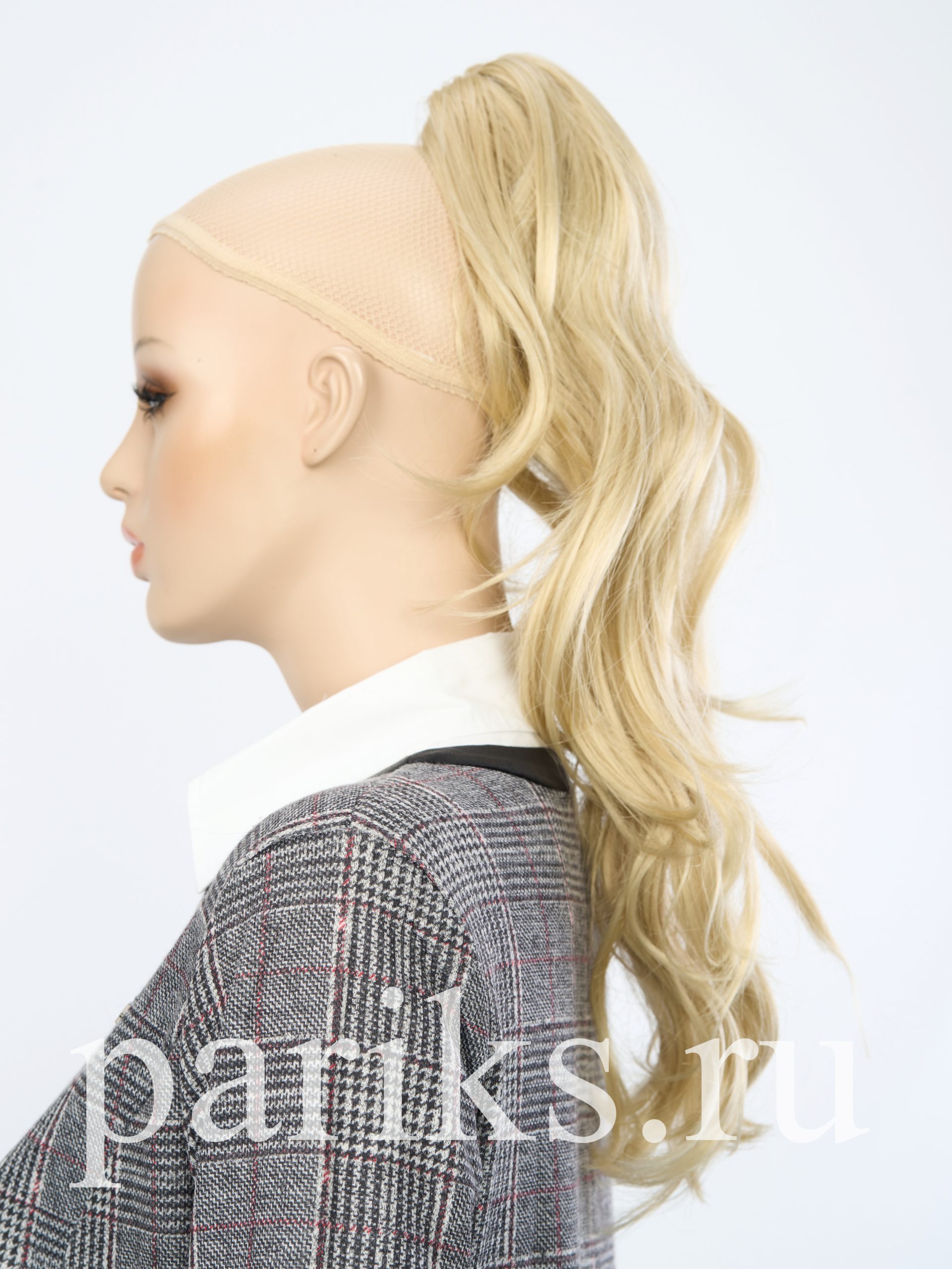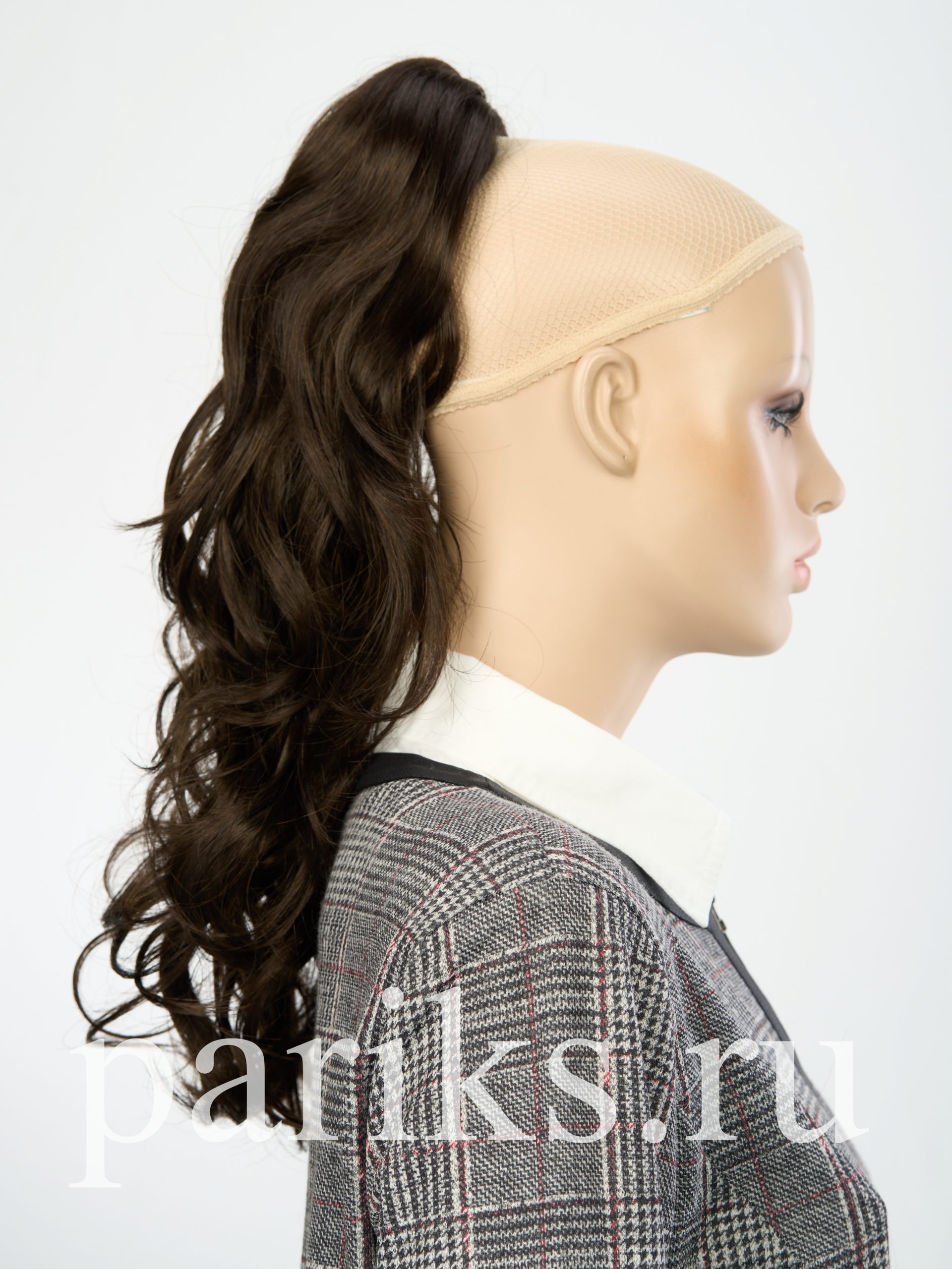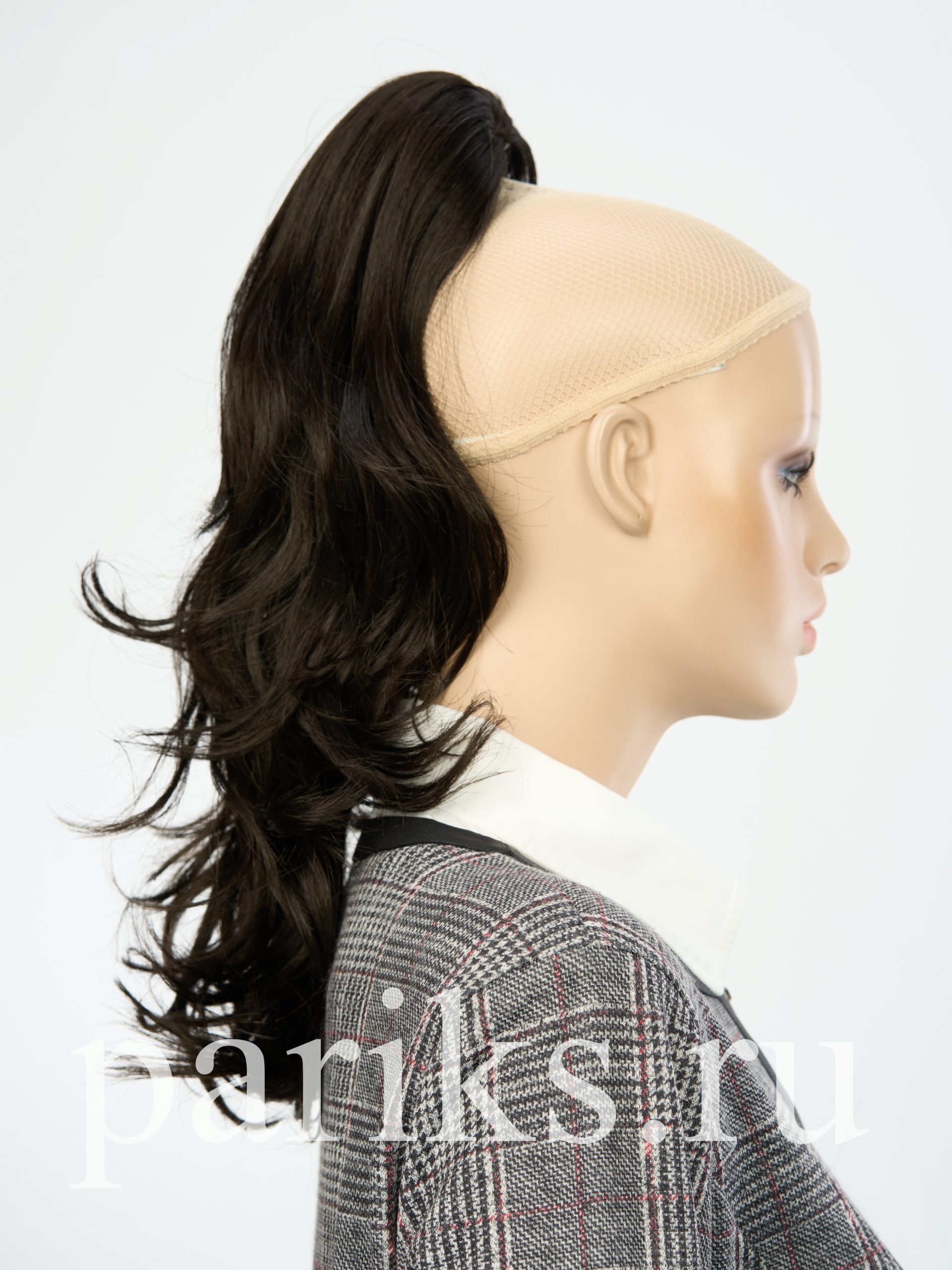 Свой волос стягивается в хвост, фиксируется резинкой.